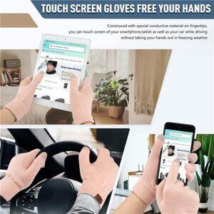 Winter Beanie Hat Scarf Touchscreen Gloves Set Pink