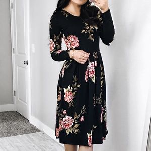 Winter Black Floral Dress