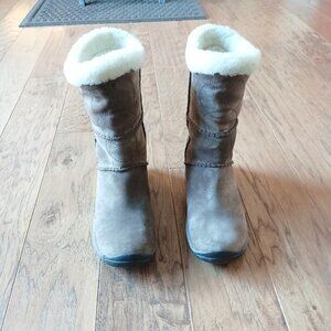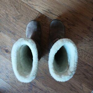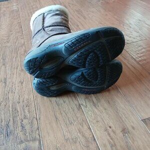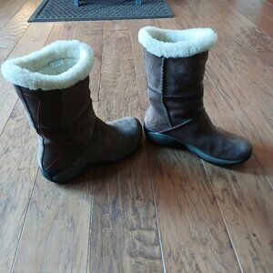 Brown nubuck leather winter boots with fleece lining. Size 7 medium. 10" tall. Air Cushion sole. Slip on. Seldom worn; great condition.