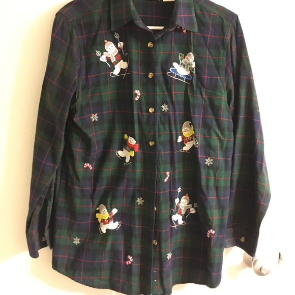 Plaid button up shirt with winter snowmen decorations! Size medium fits more like a large.