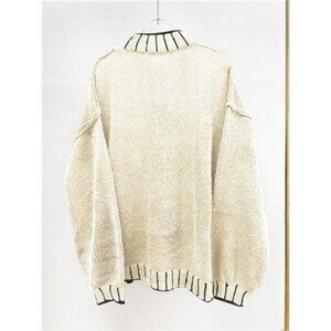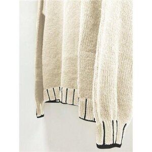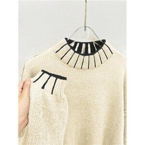 Winter Casual Round Neck Colorblock Striped Stand Collar Loose Knit Sweater