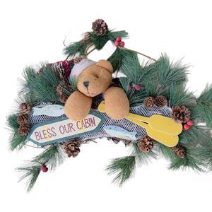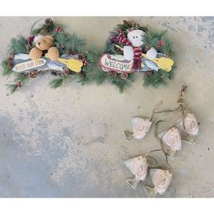 Winter Christmas Decor Fishing Cabin Bundle 2 wreaths & 1 Fish Windchime.