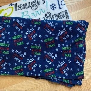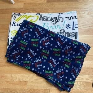 Winter Christmas Fleece Blanket Bundle Merry Christmas Blue White Brr Laugh
