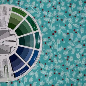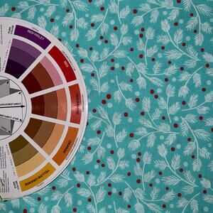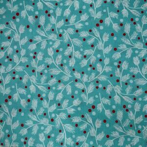 Winter Christmas Furry and Bright in Teal by Andover Fabrics - Pattern #587 / 2022 - teal background with white pine branches and red berries print.