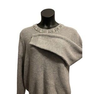 Winter Christmas Sweater plus size 3X Gray Knit Long Sleeve Boat Neck Jeweled
