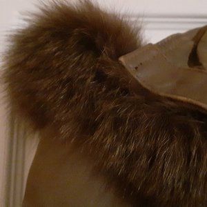 Winter Coat Natural Leather jacket with belt, hood, removable warm lining size s