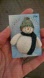 Charming snowman pin with a colorful hat and black scarf. Perfect for winter attire.