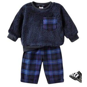 Winter Fleece 6-9 months Outfit Set With Plaid Pants & Pocket