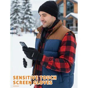 🧿High Sensitivity Touch Screen Gloves:The touchscreen gloves coated with special touch conductive material on the thumb and index finger part, allows you to use phone, tablet, smart watch, car touchscreen panels. The thin gloves make it simple when you use your smart devices efficiently without having to take the black winter gloves off