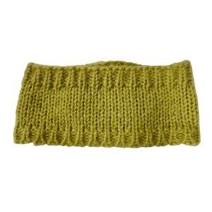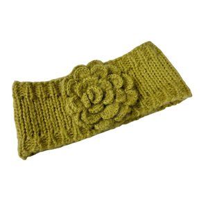 A cozy, hand-knit winter headband in a vibrant green color with floral design. Ideal for keeping your ears warm, while adding a stylish accent to your winter attire.