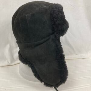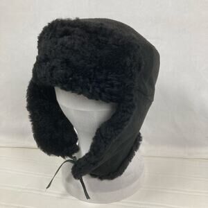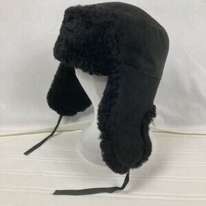 Winter Hat Russian Ushanka Military Style Black Leather Fur Ear Flaps Trapper