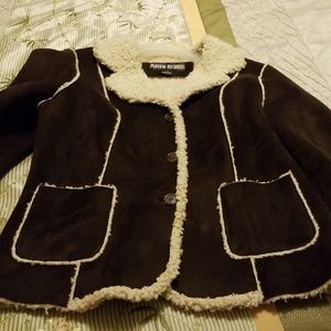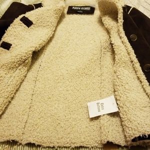 It is a Suede jacket and is lined with a thick soft fabric. It is new, never worn and doesn't have a tag.