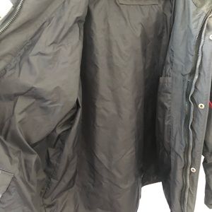 Thick, heavy winter jacket. Great for snow or rain. Many zipper pockets and detached hoodie if needed. Like new, used once. No rips no stains. Tag states Medium but fits like a large.