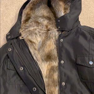How thick is this coat when the fur isn’t in? Is it water proof?