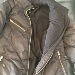 Beautiful insulated winter jacket by Style&Co. Multiple zippers. Zipped up light weight hoody. In very good condition, only a tiny pinhole by left front pocket, as pictured.