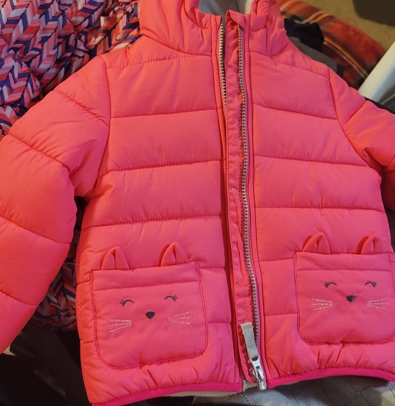 Toddler 3T hot pink winter jacket with fox detail on pockets
