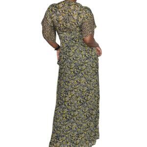 Nicole Ritchie brand Winter Kate dress FEATURES a mixed small print floral pattern with kimono style sleeves and long self ties at the waist. Long maxi length. Airy silk chiffon fabric. Lined.