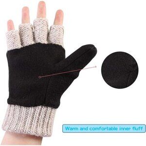 Winter Knitted Fingerless Wool Gloves Thermal Insulation Warm Convertible