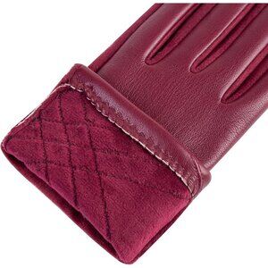 Winter Red Leather Gloves Women Touchscreen Cashmere Lining Windproof