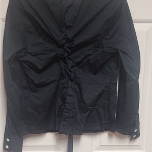 This is 2 sexy! This black top is buttoned down in the front & ties in the back. Never Worn blouse; its new without tags.