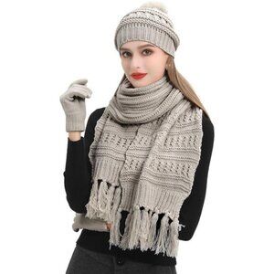 Winter Accessory Set: Embrace the cold with our comprehensive winter set, including a cozy knit beanie hat, a soft scarf, and eight pairs of gloves. This stylish trio ensures you stay warm and protected from chilly winds and harsh weather all season long.