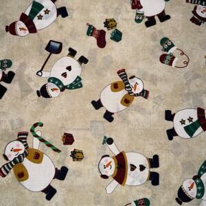 Winter Snowman with Mittens, Stockings and Snow - 1/2 Yard - Christmas, Holiday