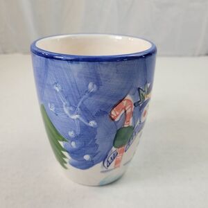 Adorable handpainted snowman holding a candy cane in a pretty shade of blue! The perfect mug for a hot beverage on a cold winter day!