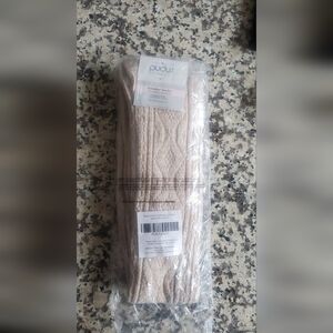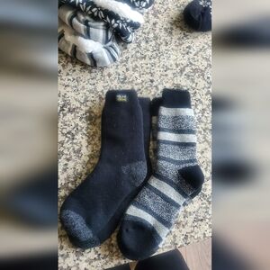 5 pair of socks and one pair of leg warmers all new. Sorry not sure what size, I am guessing womens 7 to 9.