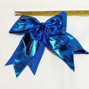 ▪︎Blue Shiny hair bow with long tails, foil lame' and grosgrain ribbon, alligator clip (6" x 7")