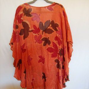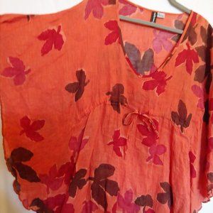 Winter Sun orange fall leaves 100% linen butterfly sleeve Medium