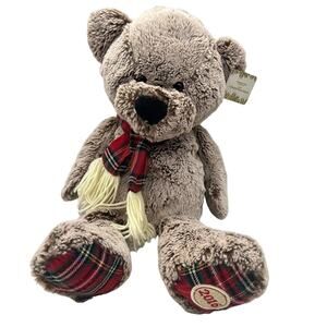 Animal Adventure Brown Winter Teddy Bear With Red Plaid Scarf And Feet Plush