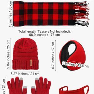 Excellent materials: hat, scarf, earmuff and gloves are made of great acrylic materials, comfortable to wear, breathable and warm, keep your head, neck, ears and hands warm; designed for touch screens, the gloves are easy to use without taking them off