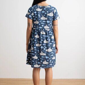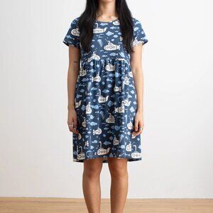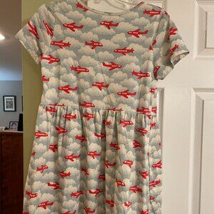 Like new Winter Water Factory dress. Never worn. Has little red airplanes in the cloud design. Short sleeves and has two side pockets. 100% cotton. Hits at knee for someone around 5"2-5"5.