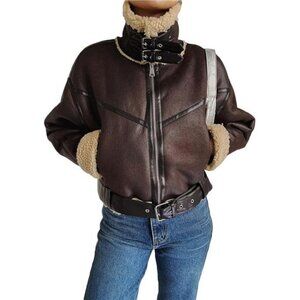 Winter Women’s Faux Lamb Sherpa Aviator Bomber Jacket – Vintage Cropped Coat