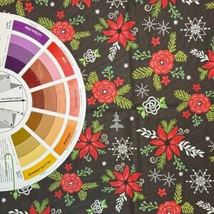 Winter Wonder Charcoal - Riley Blake Designs - Christmas Flower Berries - 1 Yard