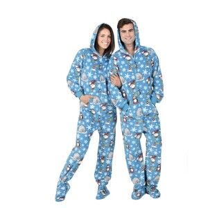 Winter Wonderland Footed Pajamas Adult Penguins XXL