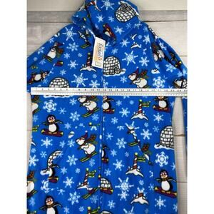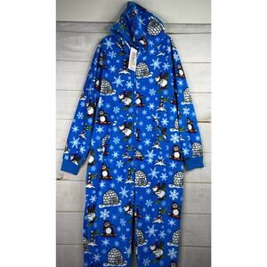 Winter Wonderland Footed Pajamas Adult Sz L Penguins Bears Igloo Dark Blue NWT