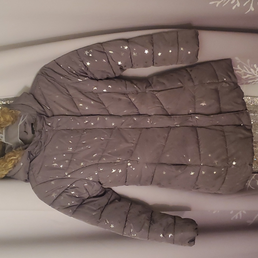 Grey winter coat with fur around the hood.