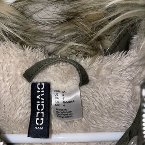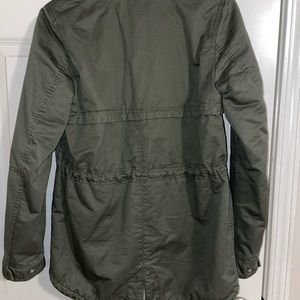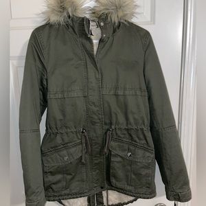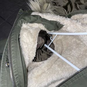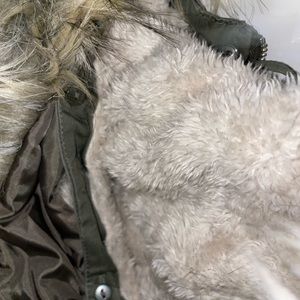 Army green coat with detachable faux-fur hood