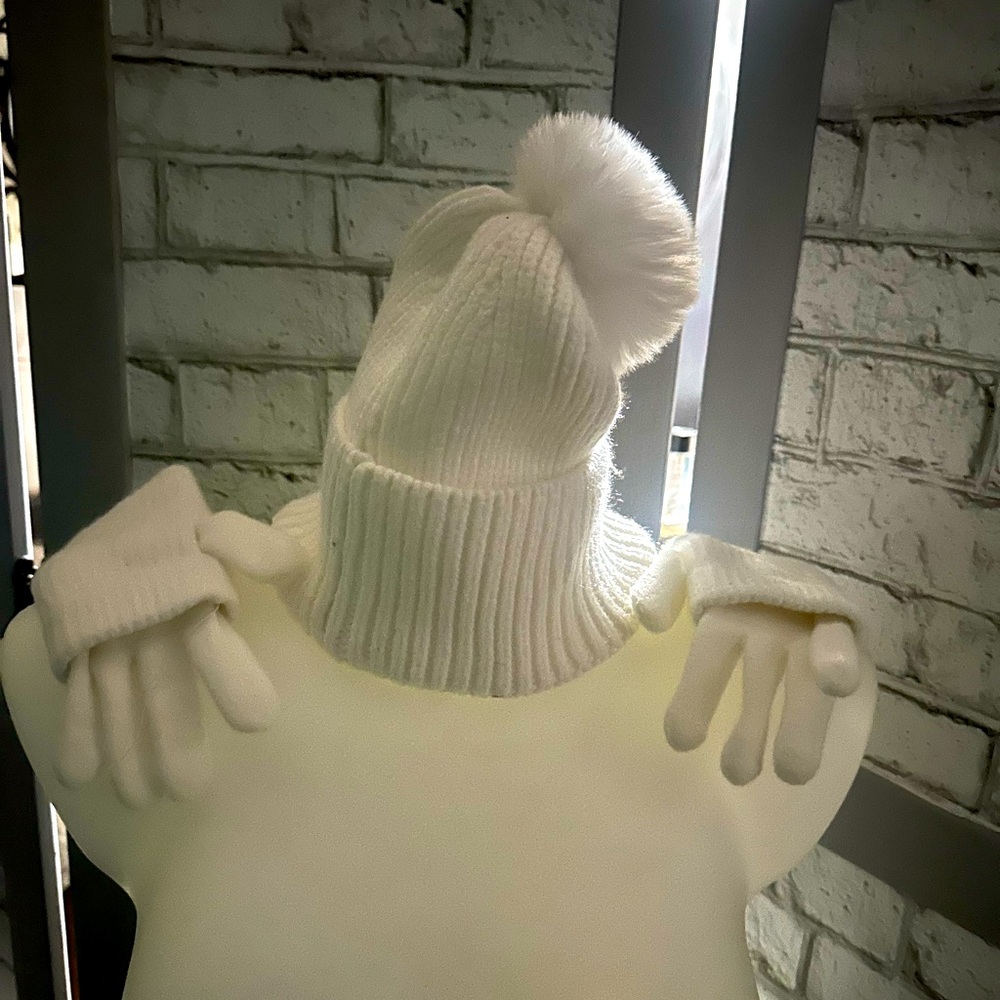 Hat with ball and matching mittens