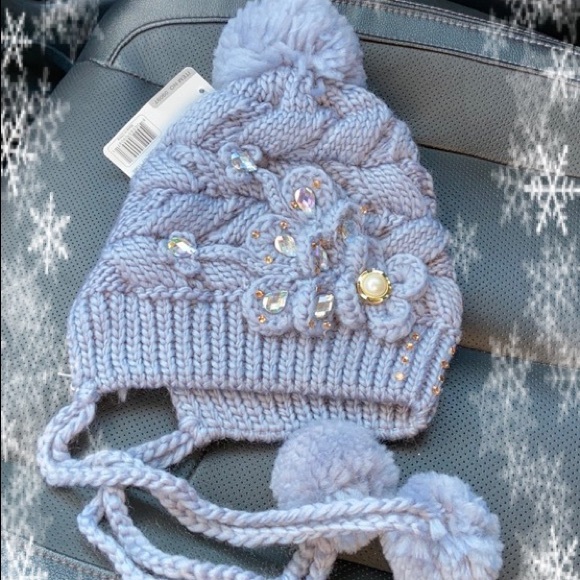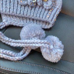 Adorable warm hat embellished front and Pom Pom ties one size fits all