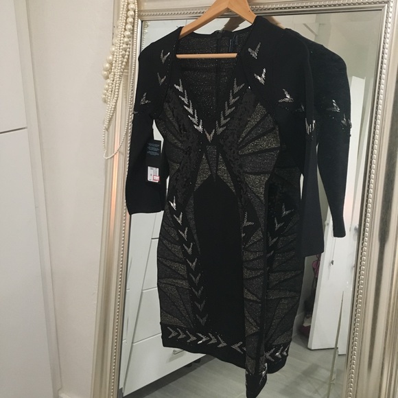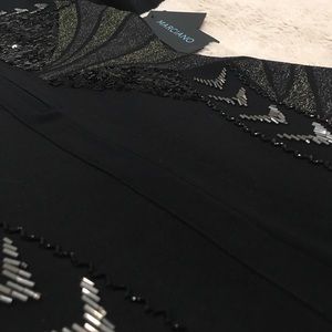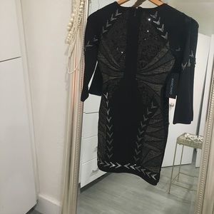 Black sequined and beaded dress. Three quarter sleeves. Beautiful detail!