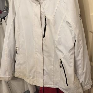 The jacket is water proof and super comfortable. Has been worn a good amount of times but still in good condition. Inside jacket is missing from the set also