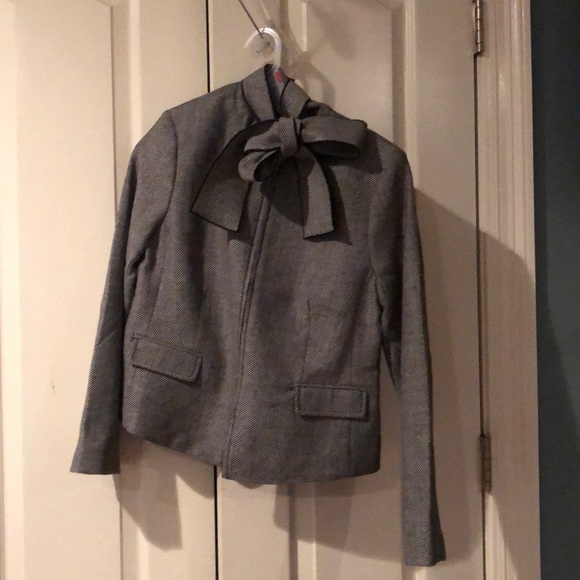 Black and white wool herringbone jacket. Great to match with a black jean or pants.