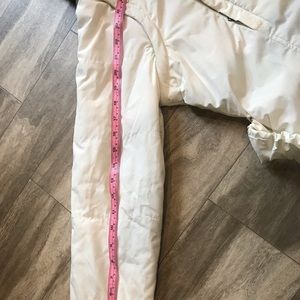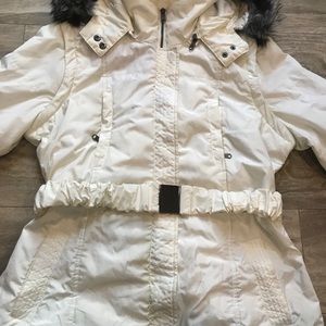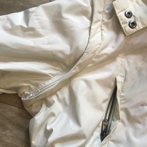 Beautiful white winter jacket, super comfy and stylish. In good condition and I worn it maybe 5 times but has a stain (see pictures) that I think can be removed with the proper washing and is hard to notice.