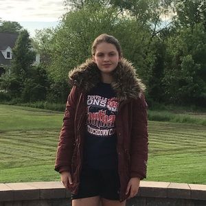 Good condition, it’s no hood but keeps your ears warm. The fury is removable (just misses one button I just never cared about it) it’s bought and produced in Hamburg Germany. I accept PayPal and Facebook payments. It’s located in southern Illinois but I can ship it everywhere in the USA for an additional Fee