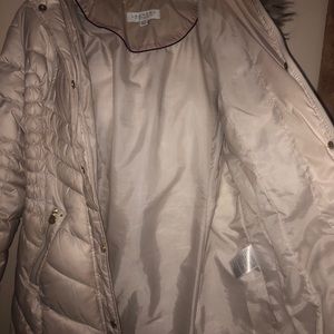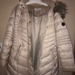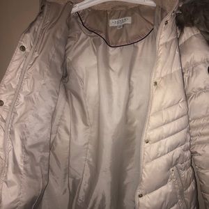 Brand new winter jacket, perfect condition. Beautiful tan color with gold buttons and zipper