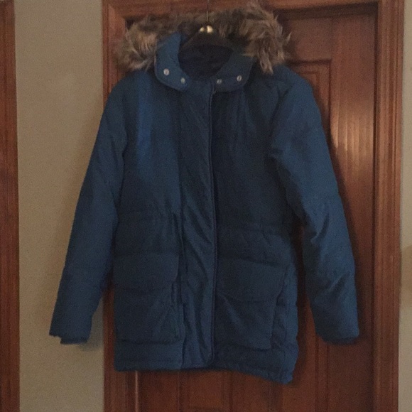 Like new, Abercrombie and Fitch winter parka. Mid-thigh length, Drawstring, zipper and snap closure. Fur-rimmed hood.