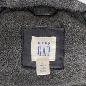 Super warm 2t jacket from The Gap. Bought this for my son but size and season didnt line up so he never wore it. It does have some slight wear on the pocket buttons as shown, just from being packed away in a bin.