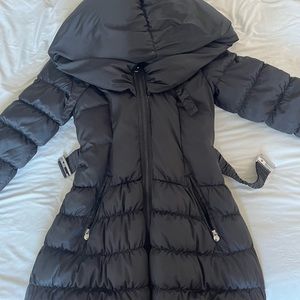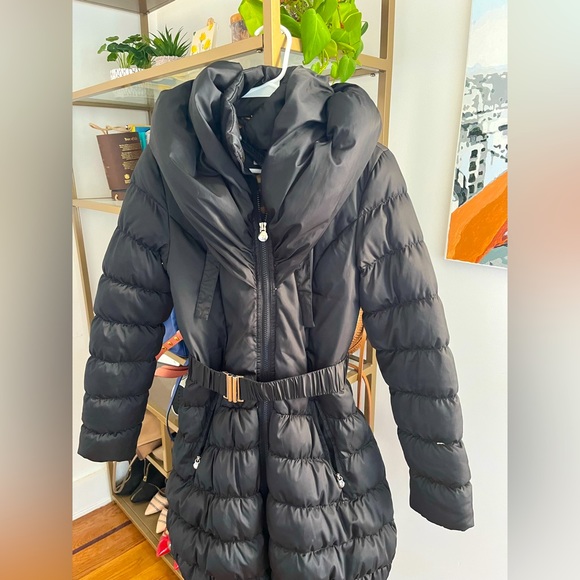 Cozy, comfortable jacket. Comes with collar that can be popped over as a hood or just fashionable collar and belt, very stylish. The perfect winter jacket!